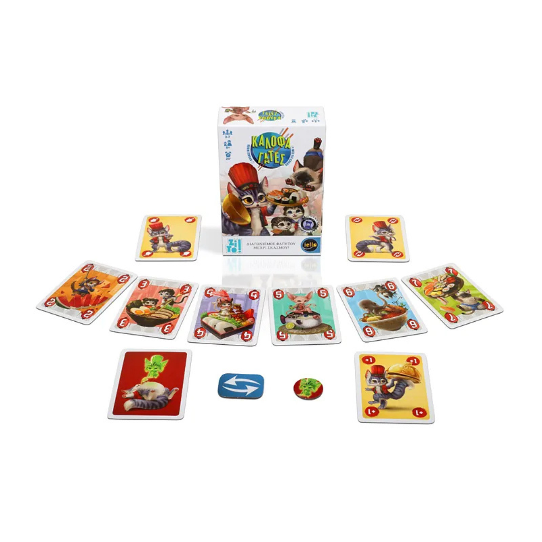 Περιεχόμενα: 72 Κάρτες-Πιάτα, 17 Κάρτες Δράσης, 6 Κάρτες Δυσπεψίας, 15 Μάρκες Δυσπεψίας, 1 Κάρτα Αλλαγής Φοράς, 1 βιβλίο κανόνων στα ελληνικά και στα αγγλικά.